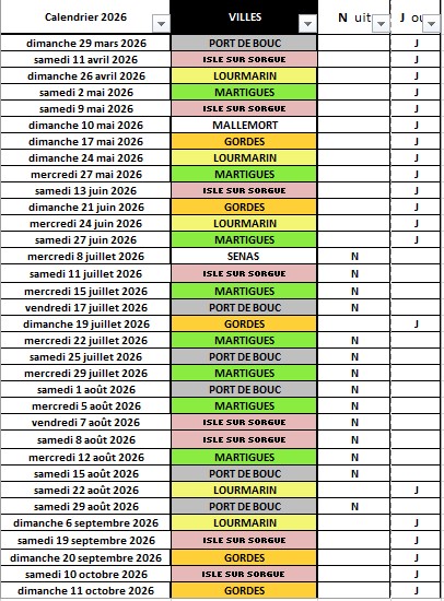 PLANNING des MARCHES